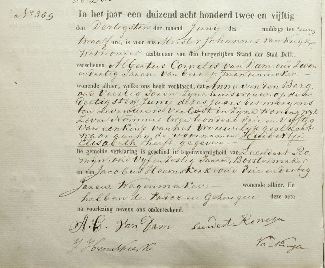 | -Aangifte geboorte | wo 30 jun 1852; DTB Delft, Akte 389 | | -Aangifte overlijden | ma 4 aug 1913; BS Rijswijk, Akte A 41 |