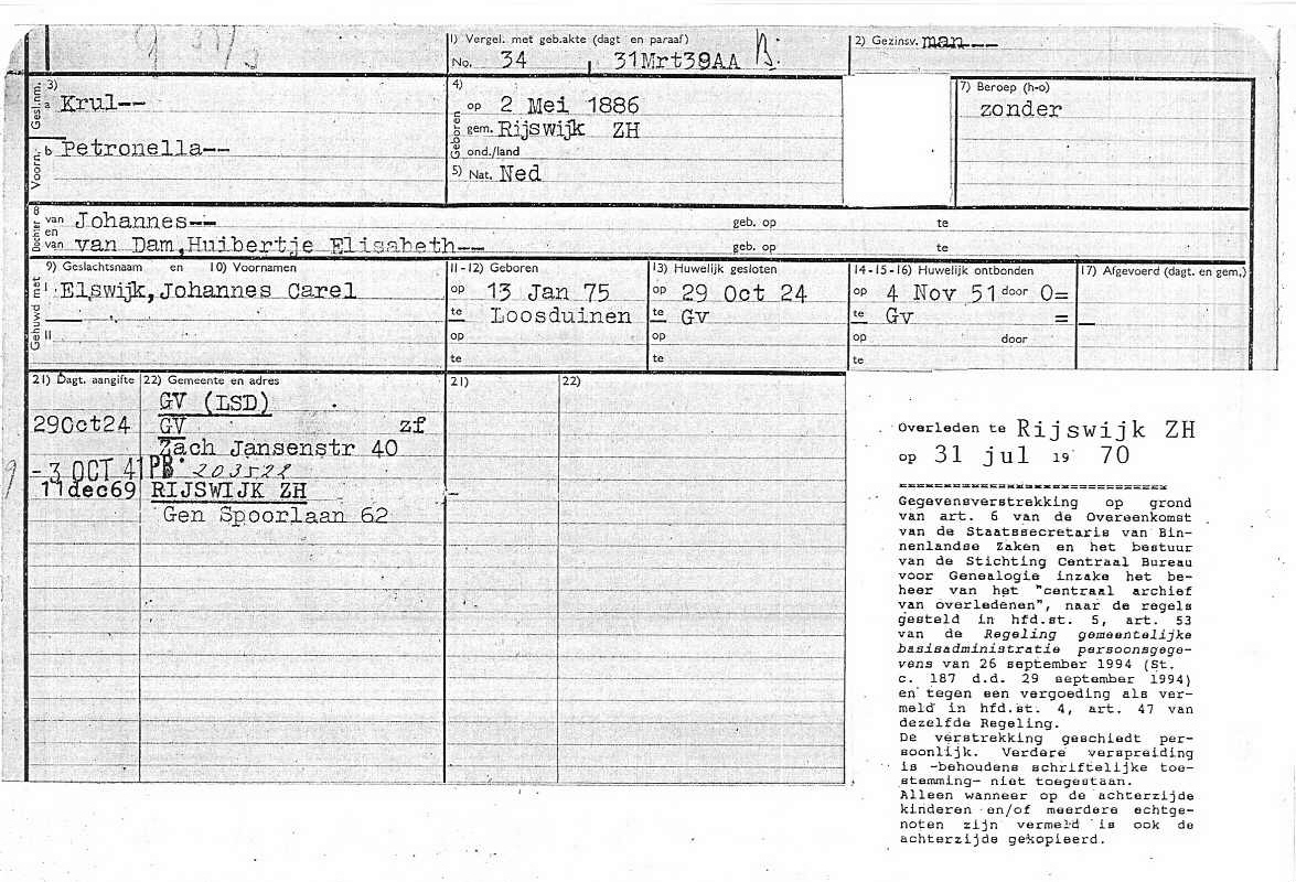 | -Geboorte | Persoonskaart CBG | | -Overlijden | http://home.planet.nl/~roo00316 |