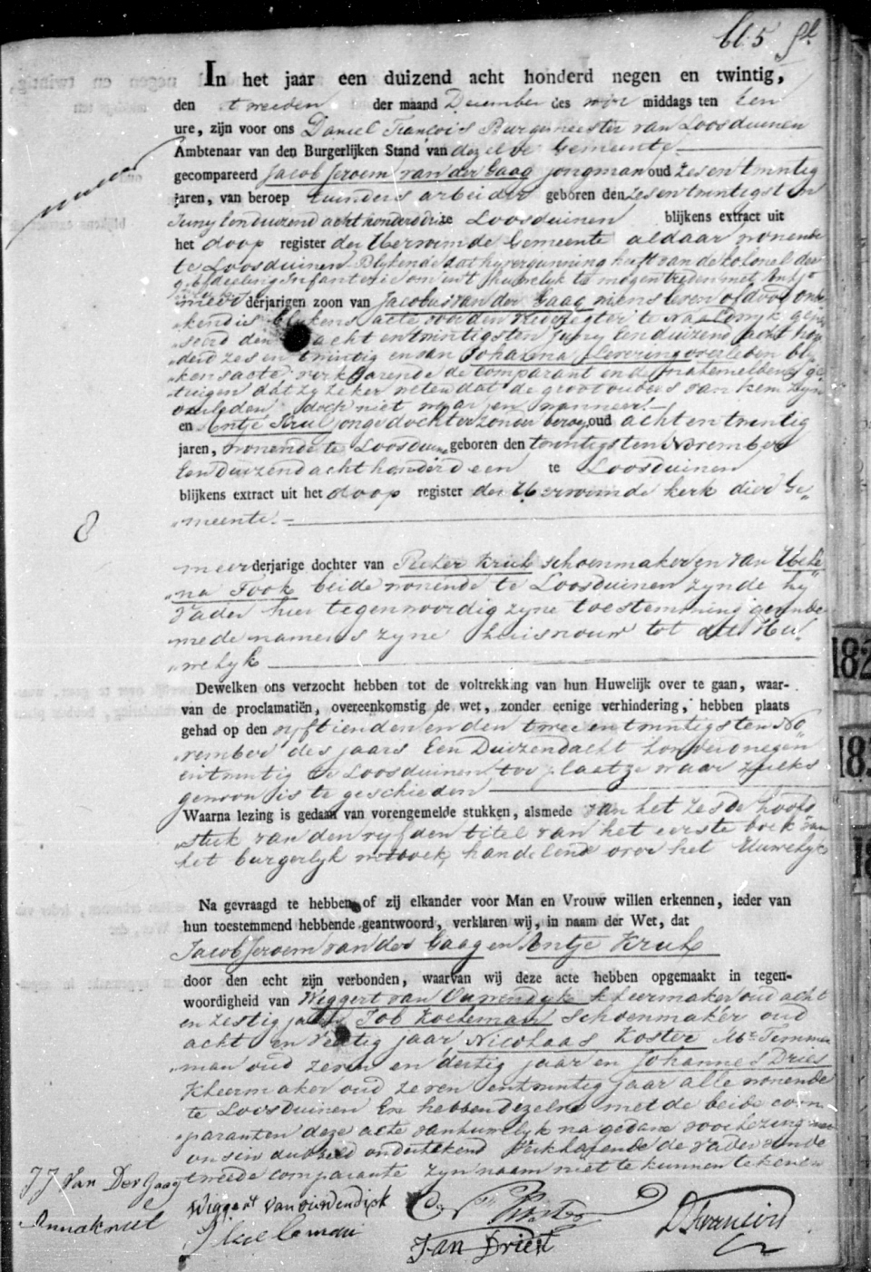 Huwelijk wo 2 dec 1829 te Loosduinen (Den Haag)