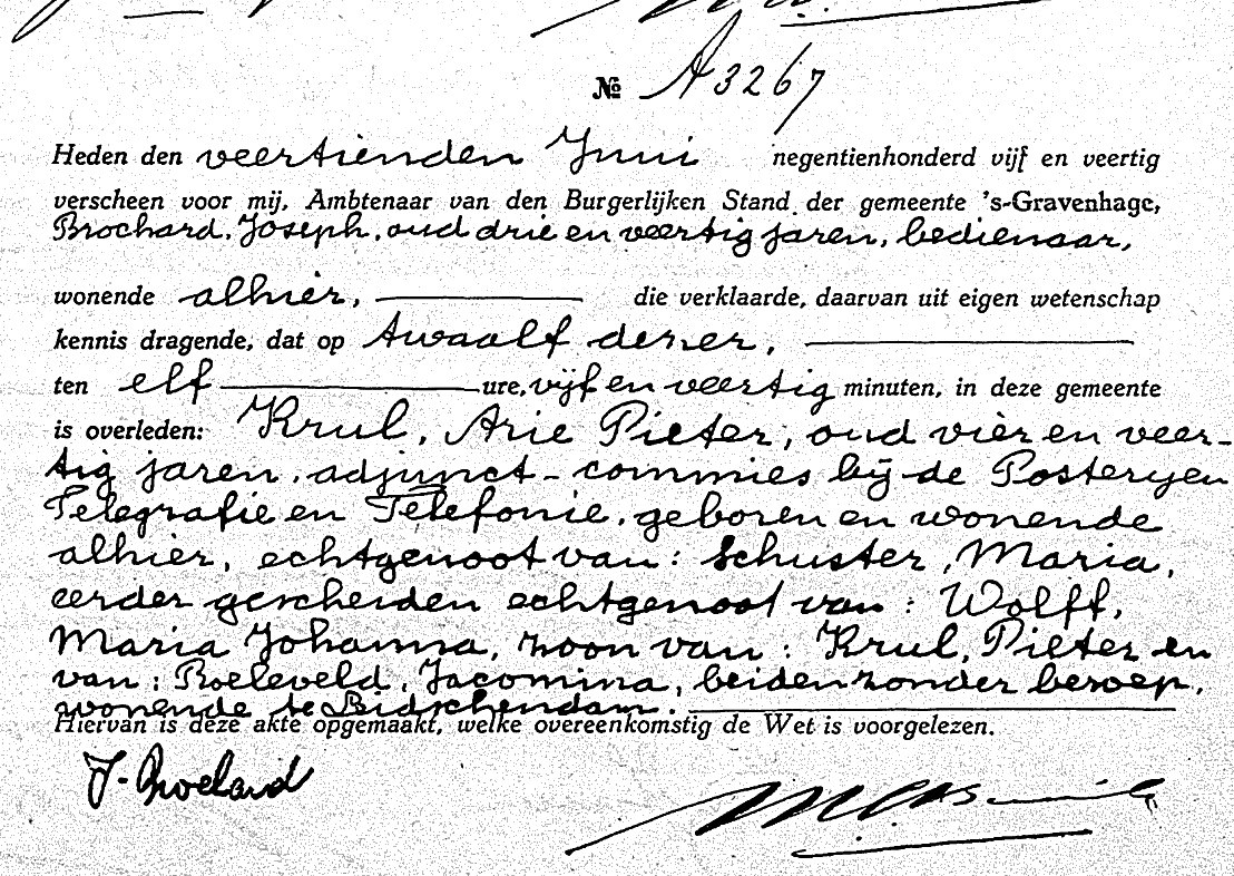 | -Geboorte | BS ’s Gravenhage, Akte A 1707 | | -Aangifte overlijden | do 14 jun 1945; BS ’s Gravenhage, Akte A 3267 |