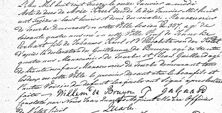 | -Geboorte | http://www.geneanet.org | | -Aangifte overlijden | ma 11 jan 1813; BS ’s Gravenhage, Overlijdensakte |