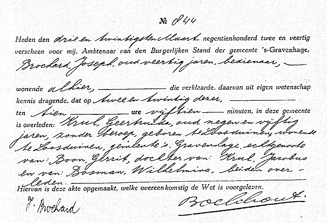 | Overleden | zo 22 mrt 1942 te Loosduinen (Den Haag) |