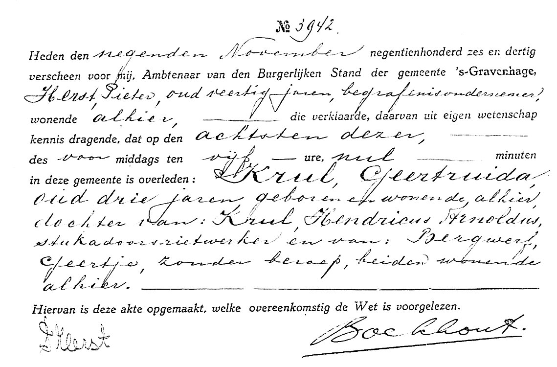 | Vader | Krul, Hendricus Arnoldus (Henk) | | Moeder | Bergwerf, Geertje | | | |