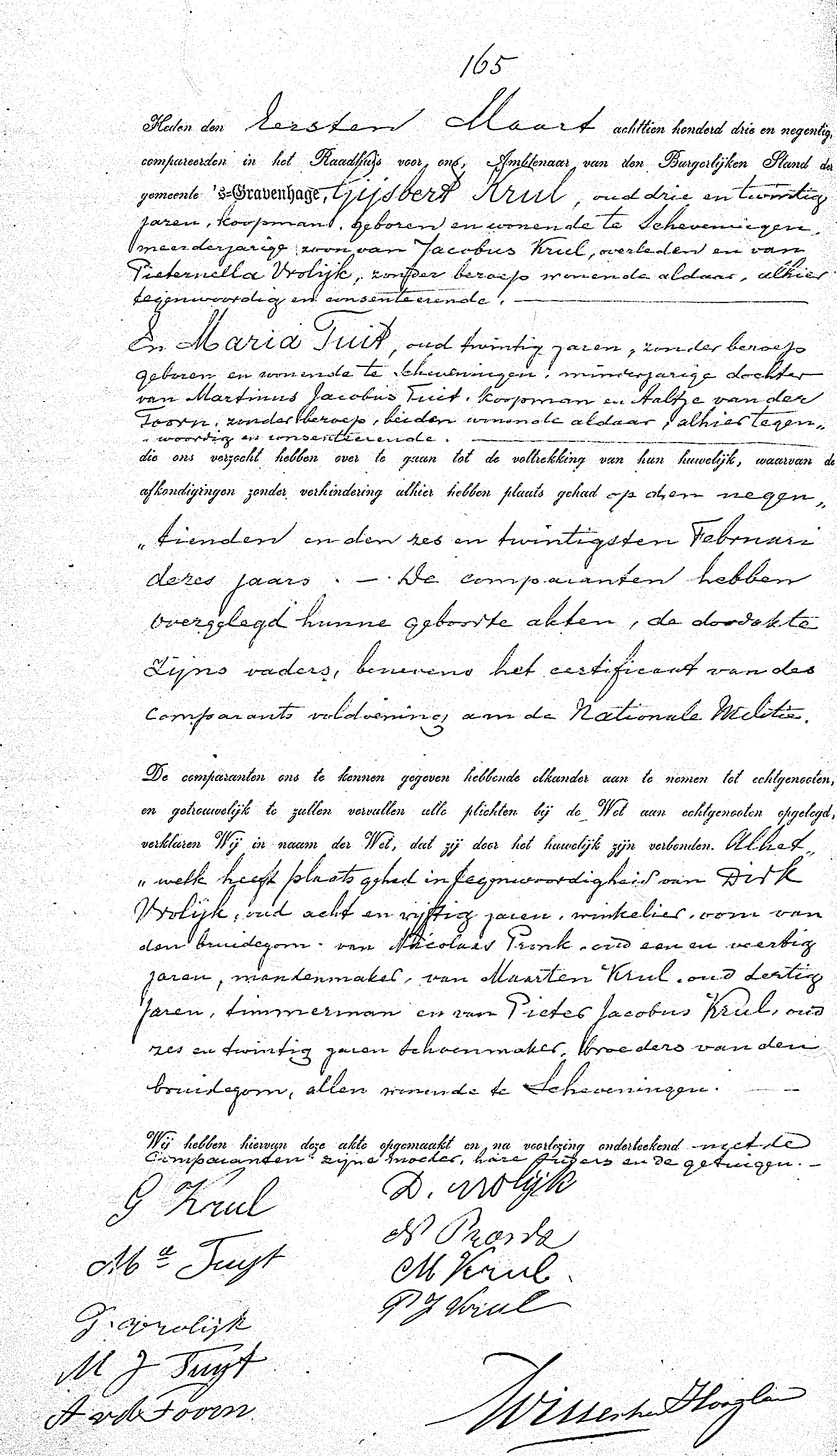 -Huwelijk BS ’s Gravenhage, Akte 165