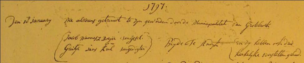 Huwelijk wo 18 jan 1797 te Grootebroek (Stede Broec)