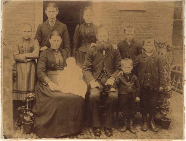 Van Johanna Hendrika Krul heb ik in de loop der jaren niet veel goeds gehoord. Haar kleindochters (kinderen van Leendert Onink) vonden haar ’niet aardig’ of ’…. niet veel liefde van gehad…’ De man van haar jongste dochter Angenita, vertelde mij dat zij flink ’aan de drank was’ en haar jenever stiekem in de keuken in een azijnfles verborgen hield. Ook na het overlijden van haar man heeft ze niet zo’n heel fraaie rol gespeeld. Haar zoon Jan Willem was haar lieveling, die zij zoveel mogelijk voortrok. De door haar man gespaarde gouden tientjes zouden plotseling uit zijn bureau verdwenen zijn en bij haar spullen zijn gestopt. Het echtpaar Onink-Krul woonde in een hofje in de Katwijkstraat te Scheveningen, waar de hier weergegeven foto ook werd gemaakt.