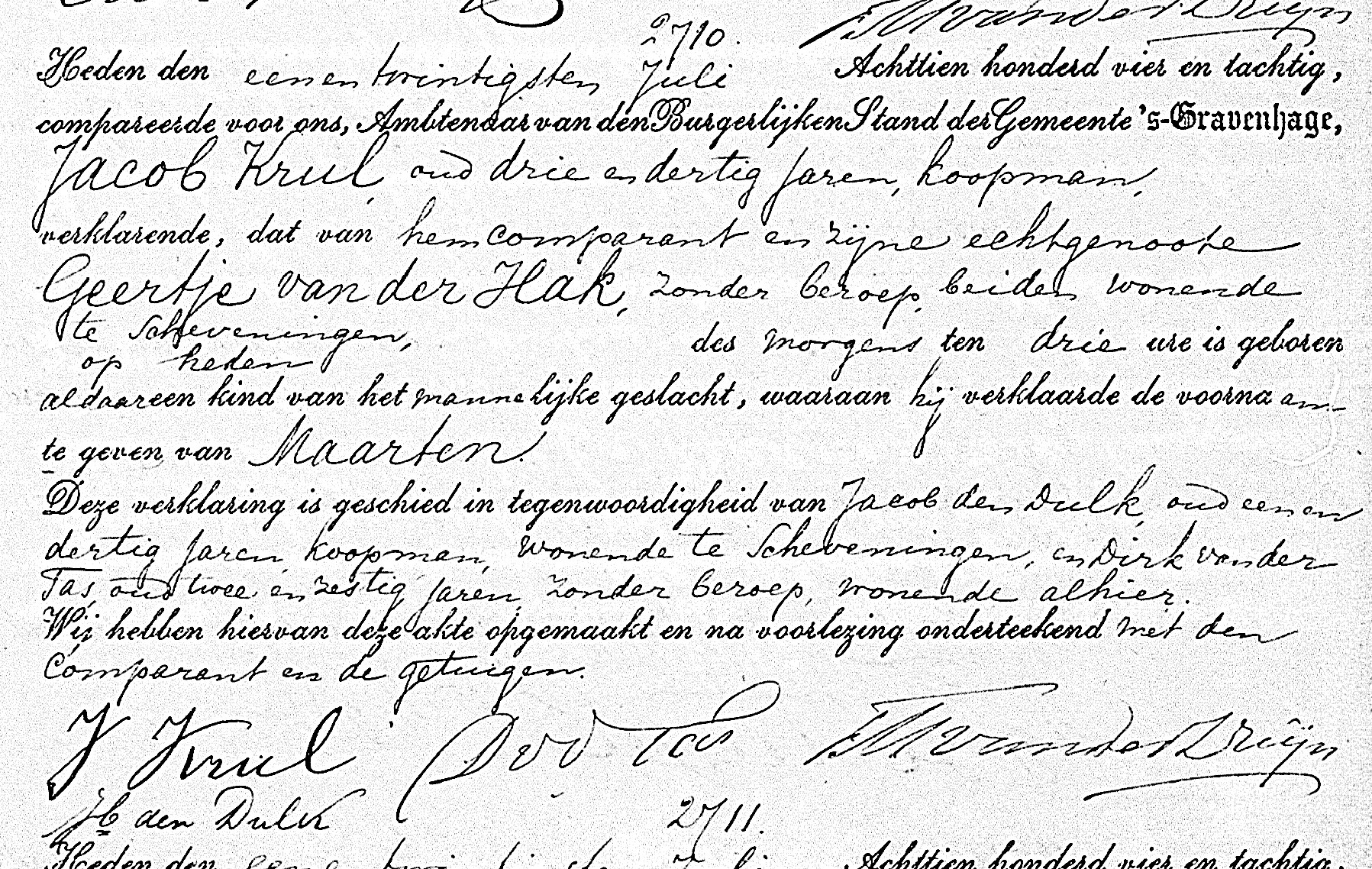 ma 21 jul 1884; BS ’s Gravenhage, Akte 2710