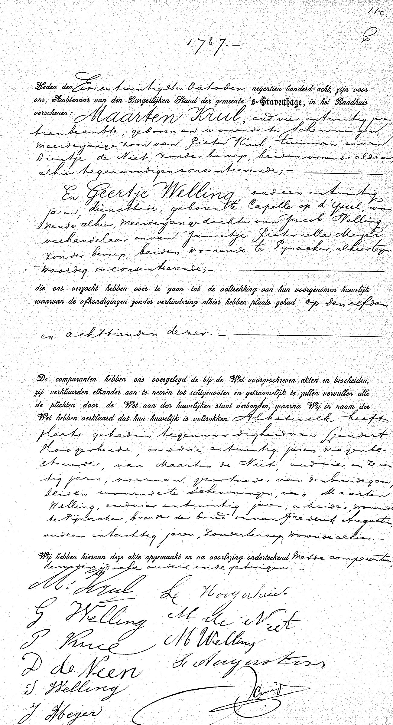 Welling: BS ’s Gravenhage, Akte 1787 |