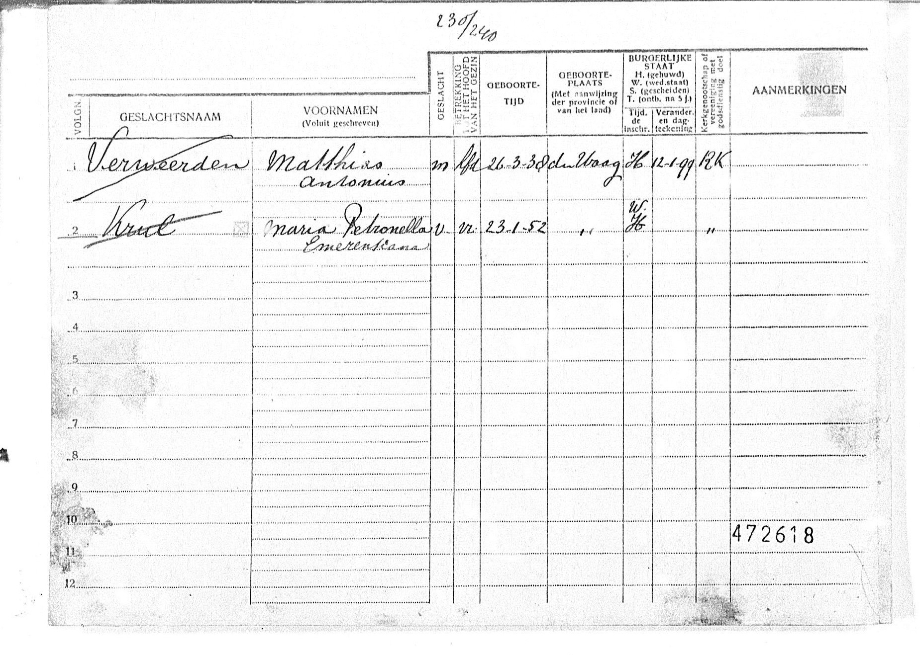 | Vader | Krul, Johannes Lambertus (Bertus) | | Moeder | Luunen, Gertrudis Anna Francisca van (Truusje, Gertruda, Geertrudis) | | | |