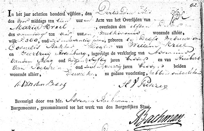 | -Doop | Boek 111 St.Jozephkerk Folio 95 | | -Aangifte overlijden | za 13 mei 1815; BS ’s Gravenhage, Akte 828 |