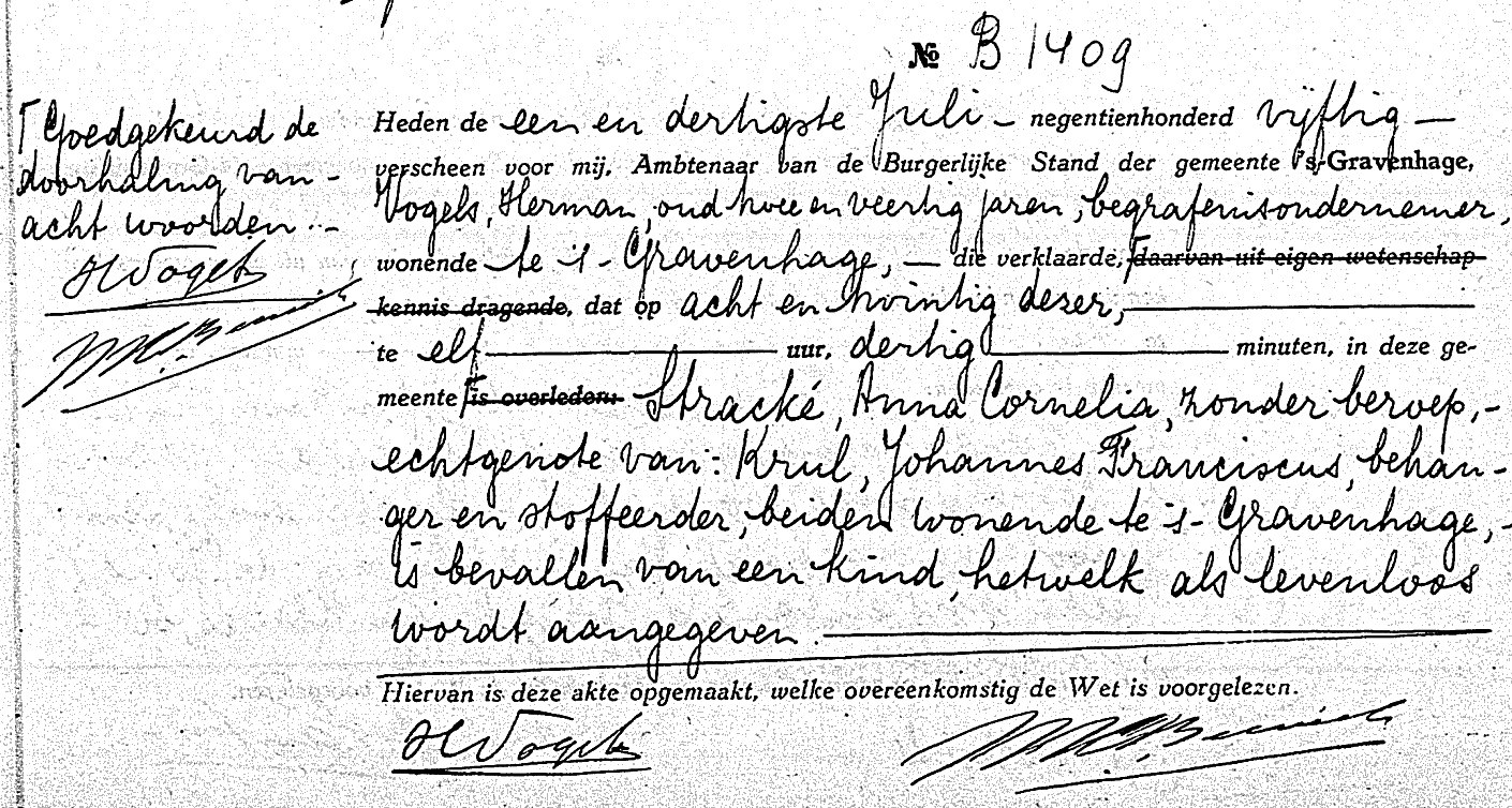 -Aangifte overlijden zo 30 jul 1950; BS ’s Gravenhage, Akte B 1409