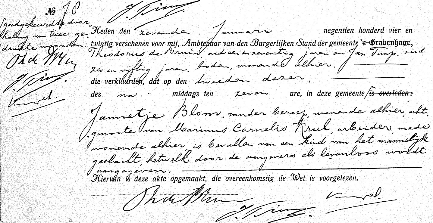 -Aangifte overlijden ma 7 jan 1924; BS ’s Gravenhage, Akte 78
