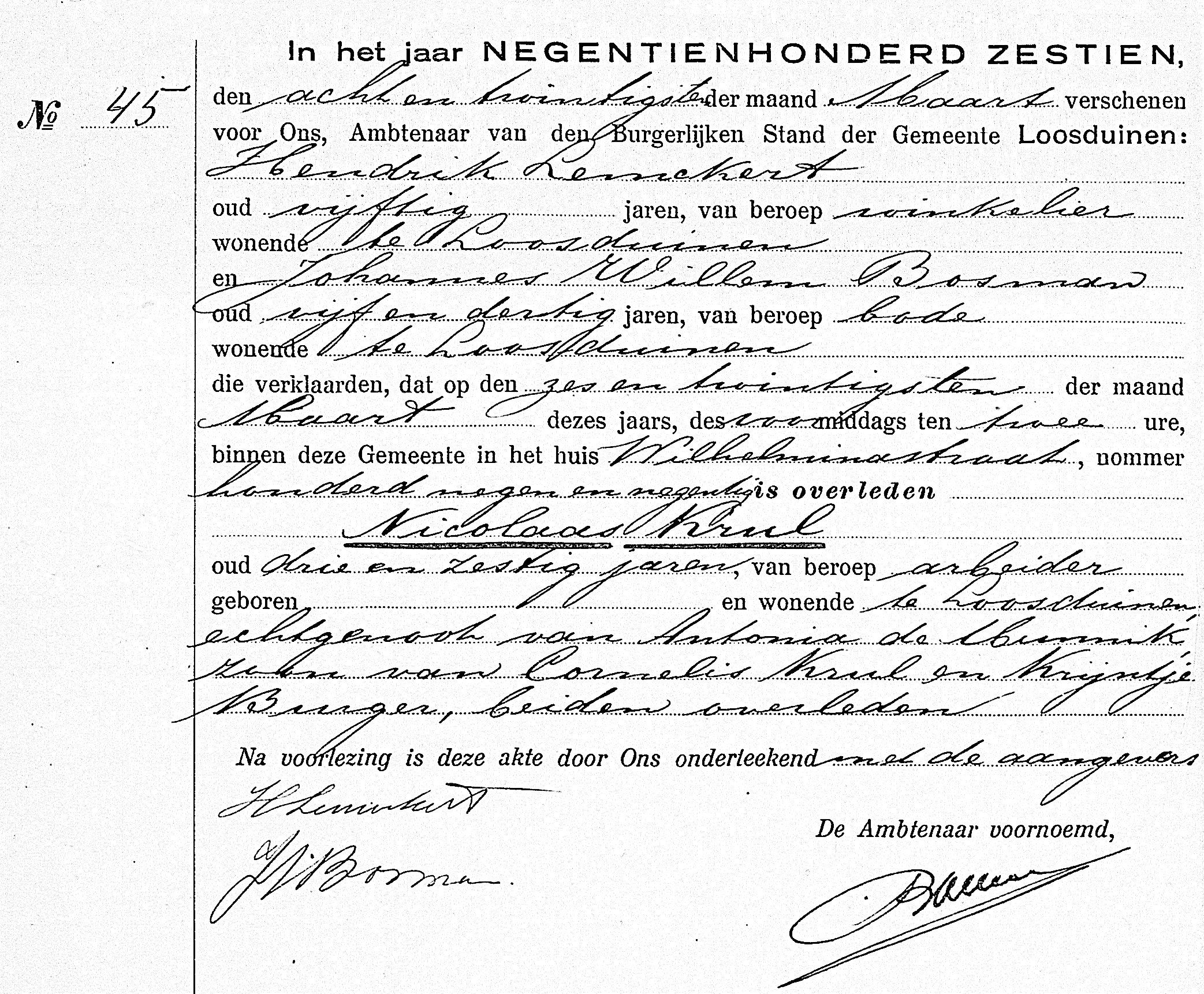 Geboren vr 31 dec 1852 te Loosduinen (Den Haag)