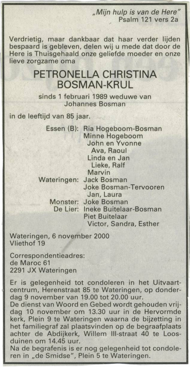| Begraven | vr 10 nov 2000 te Loosduinen (Den Haag) |