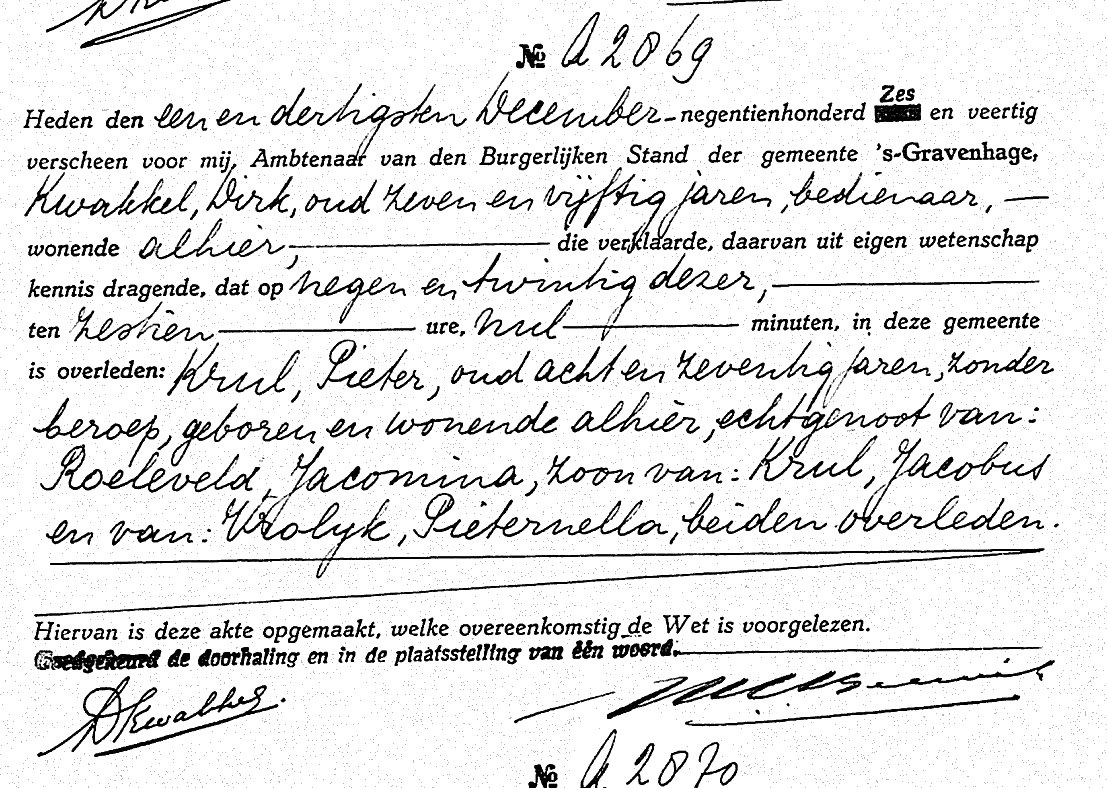 -Aangifte overlijden di 31 dec 1946; BS ’s Gravenhage, Akte A 2869