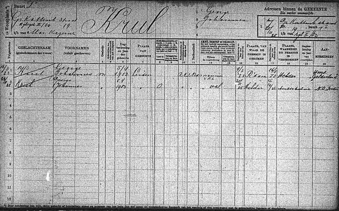 Georges oudere broer Hendrik is de enige van de kinderen die een normaal bestaan weet op te bouwen. Hij bereikt de respectabele leeftijd van 92 jaar. Uit zijn eerste huwelijk heeft hij twee dochters en met zijn tweede vrouw komen er nog een dochter en een zoon bij: Johannes Hendrikus Krul, geboren in 1942. Zou die meer weten over zijn oom George? Of zouden Georges stiefkinderen nog verhalen over hem hebben?