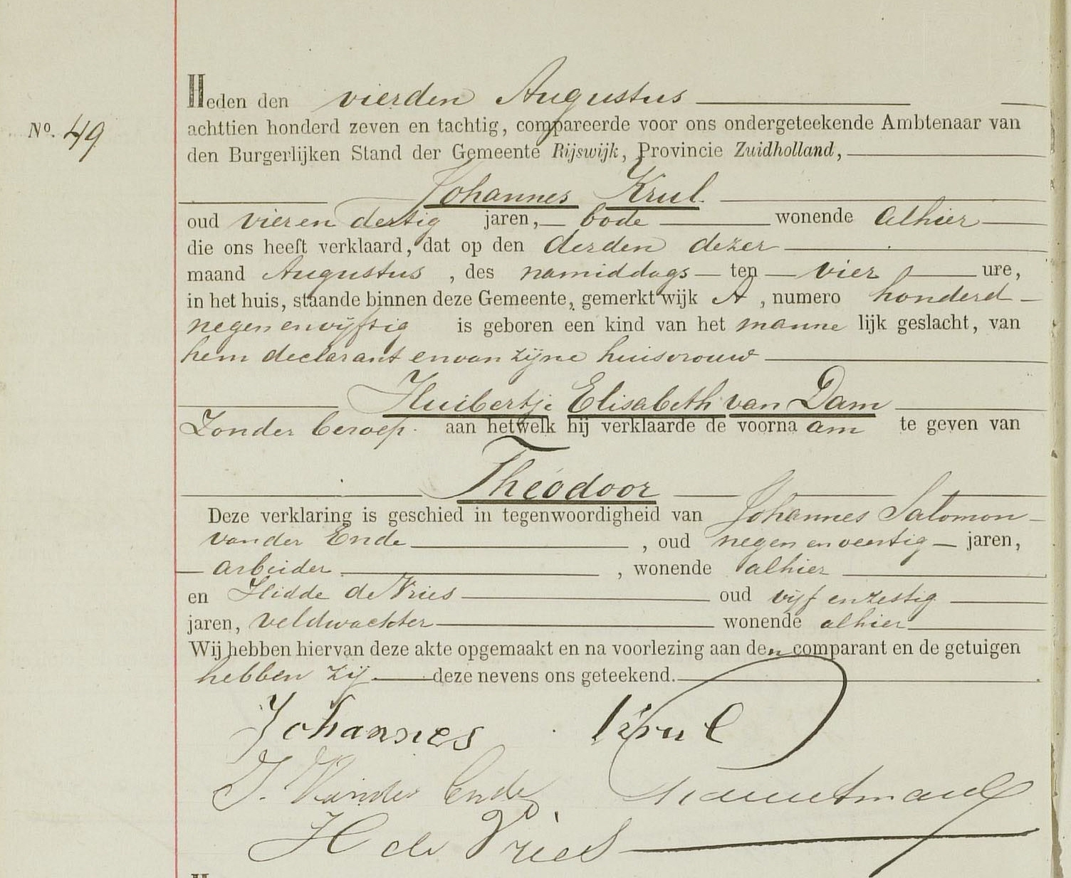 | Vader | Krul, Johannes (Jan) | | Moeder | Dam, Huibertje Elisabeth van (Dien, Huiberdina, Huibertje Elizabeth) | | | |