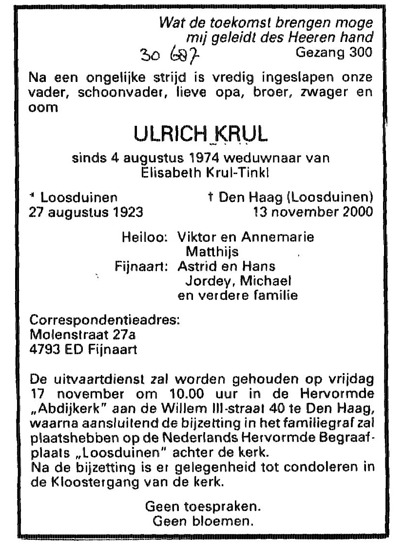 Begraven vr 17 nov 2000 te Loosduinen (Den Haag)