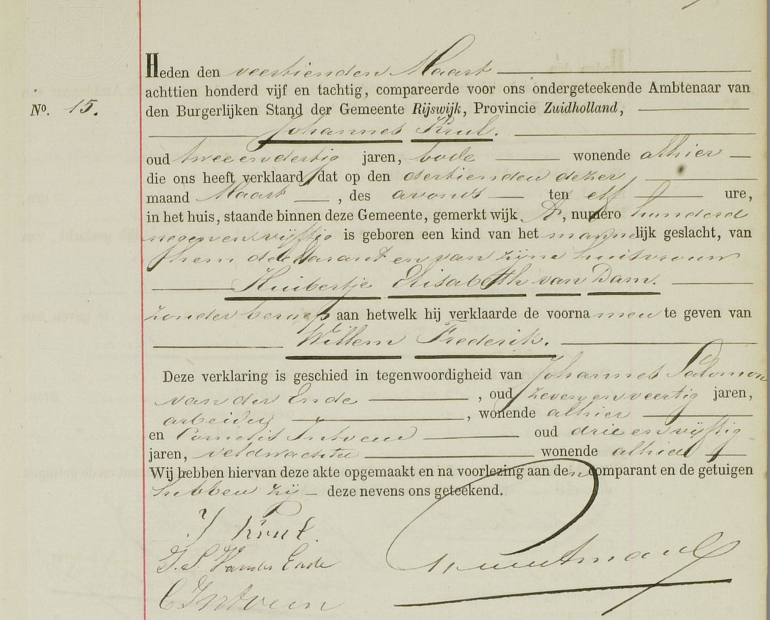 -Aangifte geboorte za 14 mrt 1885; BS Rijswijk, Akte 15