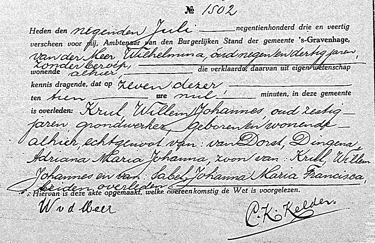 | -Geboorte | BS ’s Gravenhage, Akte A 4434 | | -Aangifte overlijden | vr 9 jul 1943; BS ’s Gravenhage, Akte A 1502 |