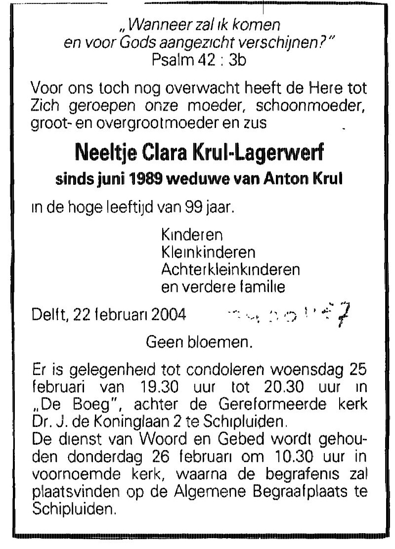Overleden zo 22 febr 2004 te Delft