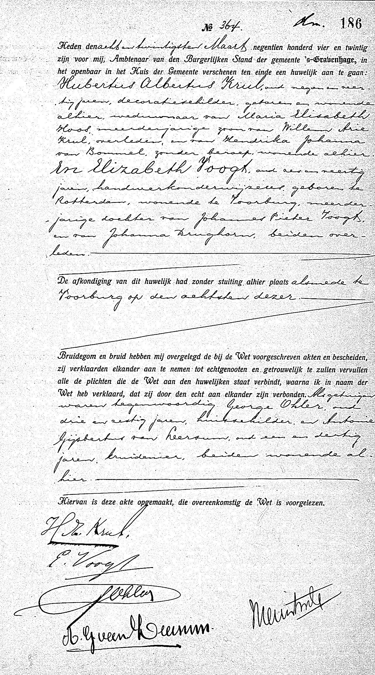 -Huwelijk BS ’s Gravenhage, Akte B 364