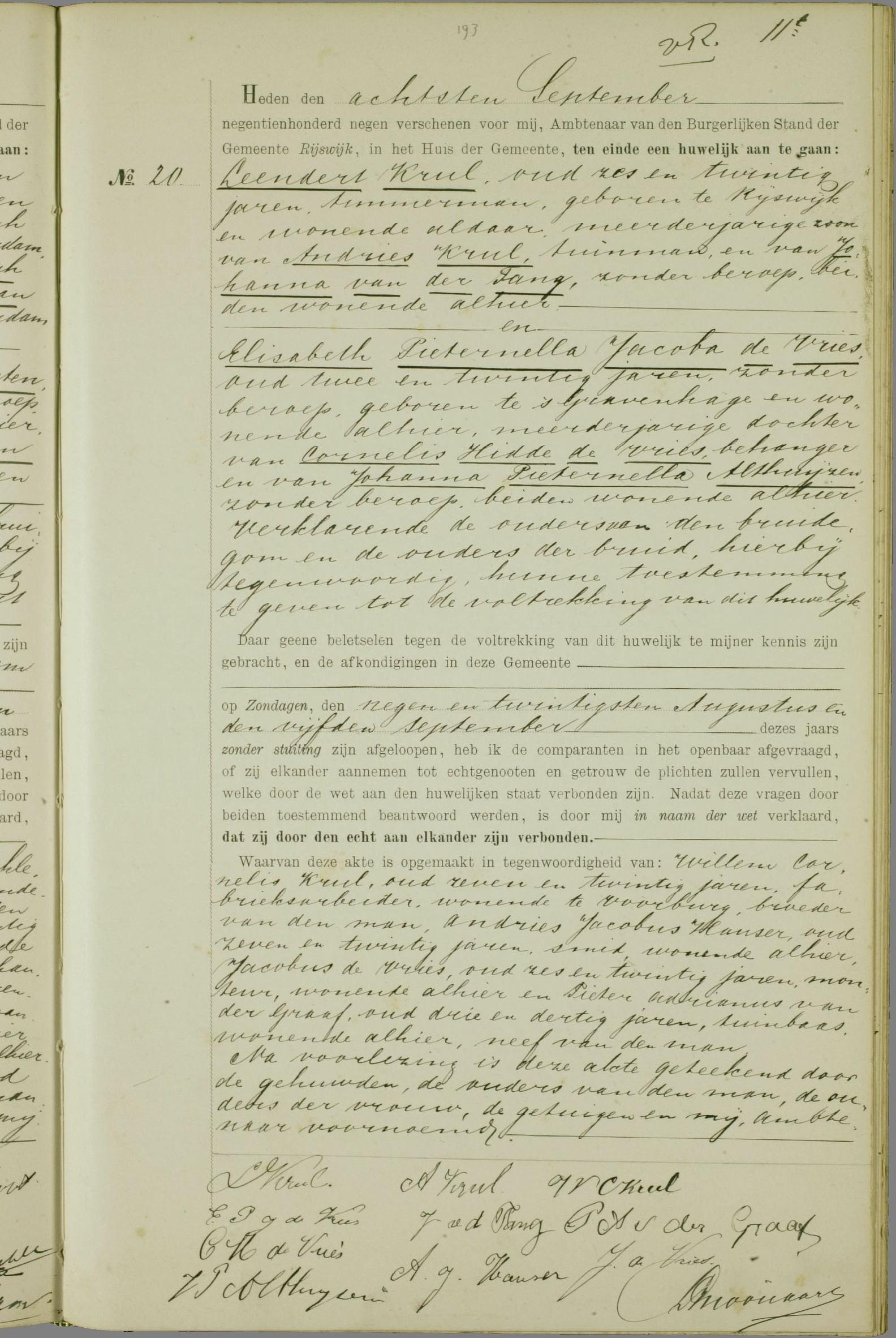 -Huwelijk BS Rijswijk, Akte 20